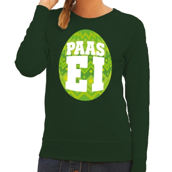 Paas sweater groen met fel groen ei voor dames