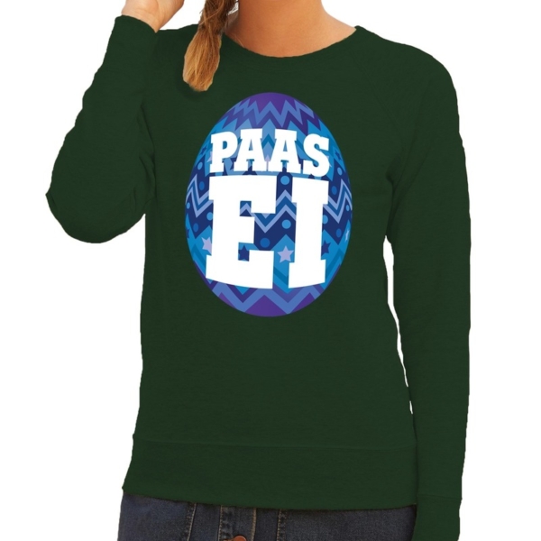 Paas sweater groen met blauw ei voor dames