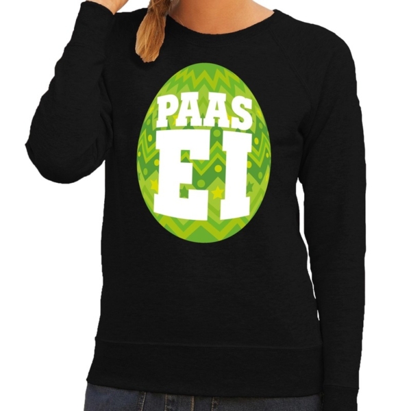 Paas sweater zwart met groen ei voor dames