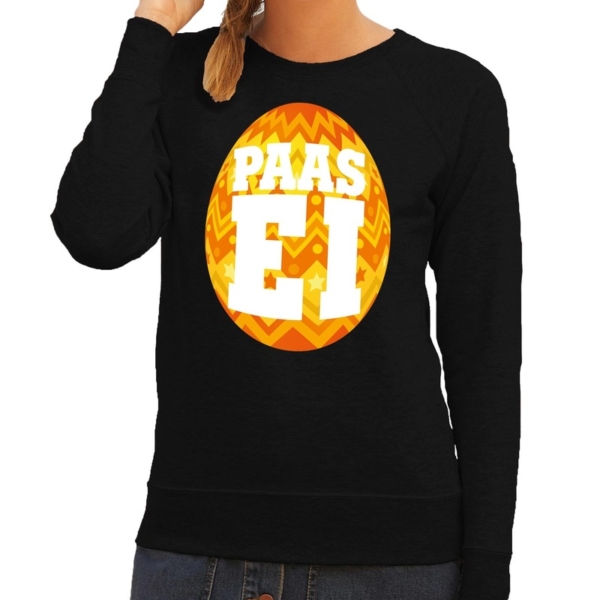 Paas sweater zwart met oranje ei voor dames