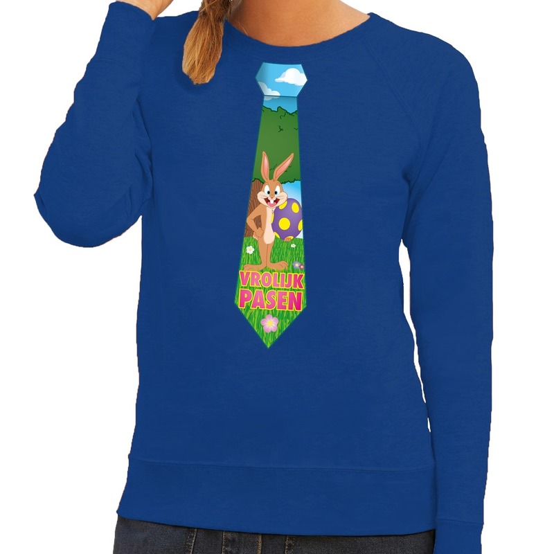Paashaas stropdas vrolijk Pasen sweater blauw voor dames